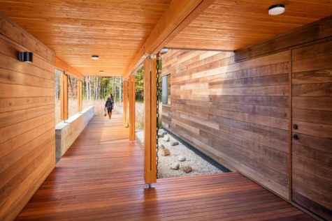 Homeowners Martin Kremer and Barbara Merson adore their spacious porch and front entryway. On the left is a separate guest apartment with a kitchenette, and on the right is the main house.