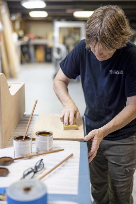 Holyoke’s company got off the ground subcontracting for Cold Mountain Builders in Belfast. “There were six of us carpenters when we started,” he recalls. “We all had the desire to do the absolute best work. There was competition between the guys to do the highest quality.” Not all projects, though, can support the hours needed for peak craftsmanship, so Holyoke and his cohort gravitated toward the high-end residential market. “I’m wired to do complicated, highly crafted things. In order to work for an honest wage, I had to find people willing to pay for more time, so more love could go into the project.”