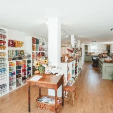 The resulting space seamlessly blends rugged Maine character with refined contemporary design. Distinctive brand elements shape the customer journey, from the dramatic red, mountain-shaped canopy over the retail bar to custom fixtures and millwork that reference the state’s natural landscapes. Environmental graphics and carefully curated materials carry the brand’s story throughout the store, while strategic lighting, spatial flow, and sight lines create a sense of discovery and connection.
