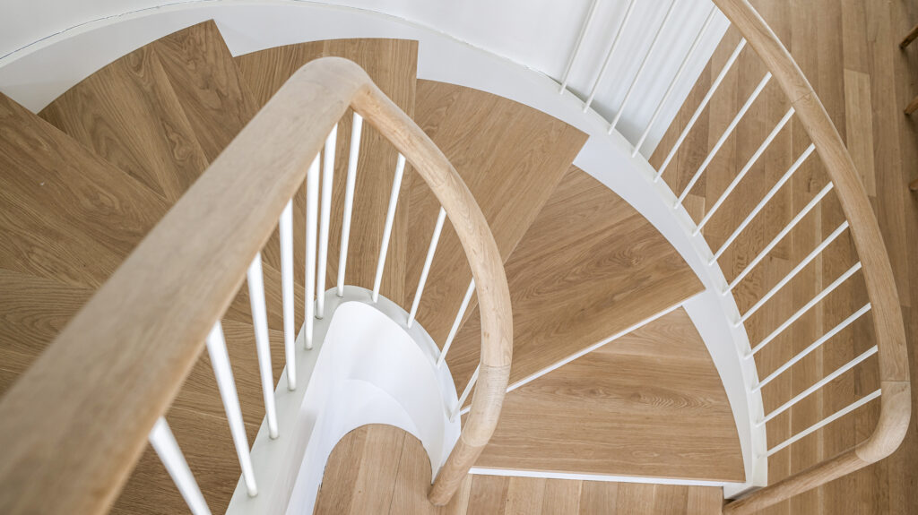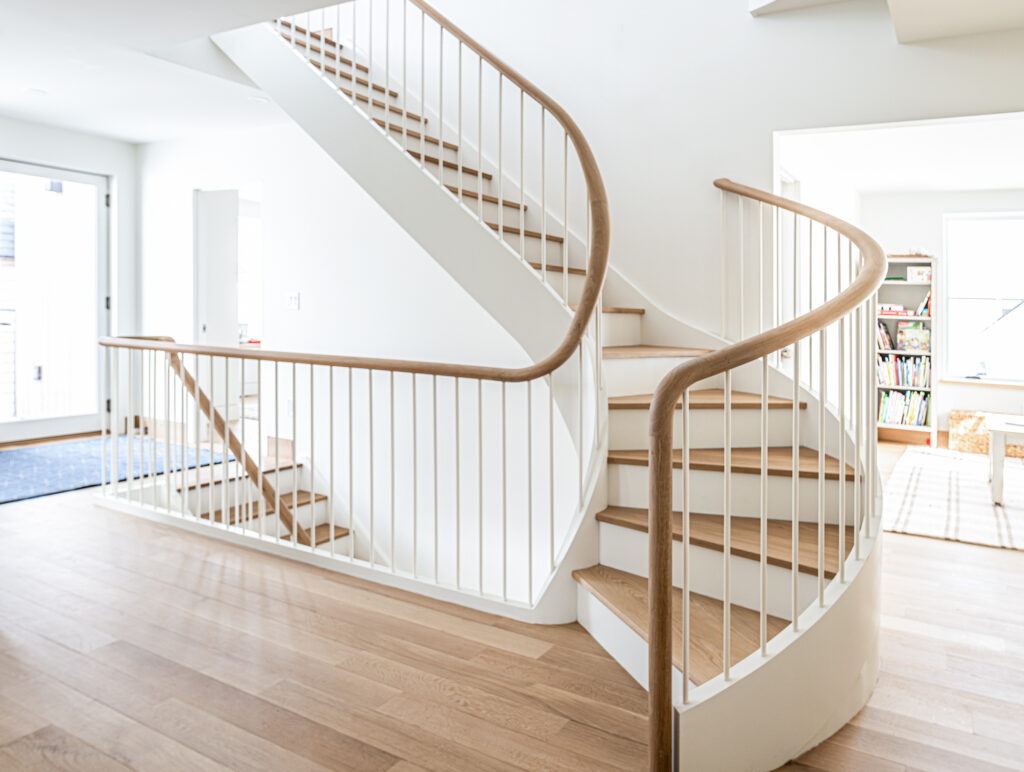 Reiche officially launched Maine Stair Company three years ago, and today he runs the business out of Portland with a small, skilled team. Though he’s based in Maine, he’s completed projects in Boston and California and is considering upcoming jobs in New Hampshire, New York, and Connecticut. From sweeping curved staircases to sculptural handrails, each design is engineered with a blend of intuition, calculation, and dedication to quality. “There are building codes, sure, but we try to go way beyond the minimum. We want our work to last hundreds of years,” Reiche says.