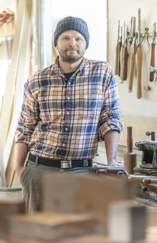 That community-minded ethos extends to every client interaction. A recent favorite project of Reiche’s involved working with Sten Havumaki of Biddeford’s Oak and Laurel Workshop to install a sculptural handrail for an 86-year-old woman to go up three steps in her home. “She loved shells and Thomas Moser furniture, so we blended both ideas,” he says. “When we finished up, she said to us, ‘Are all your customers this happy? This is beyond anything I could have imagined.’ That’s the kind of impact I want to make.”